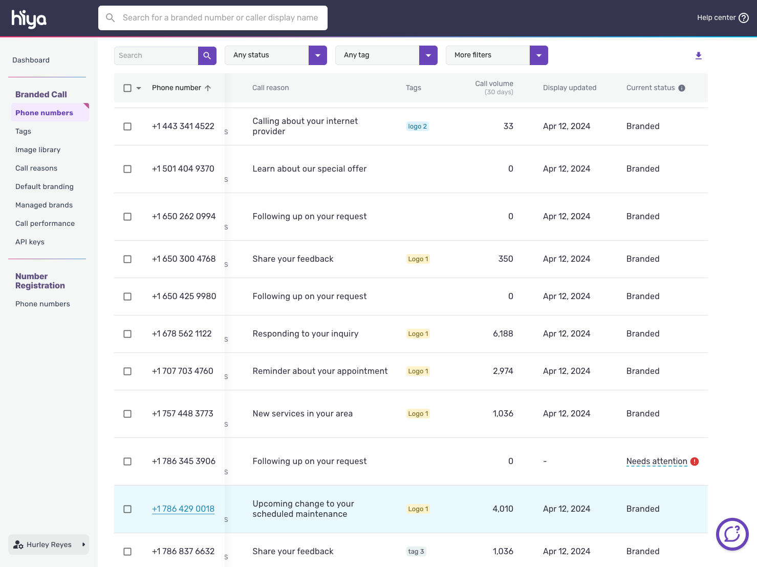 Branded: Phone numbers receiving call branding across all Hiya-powered devices, carrier networks, and other distribution channels.