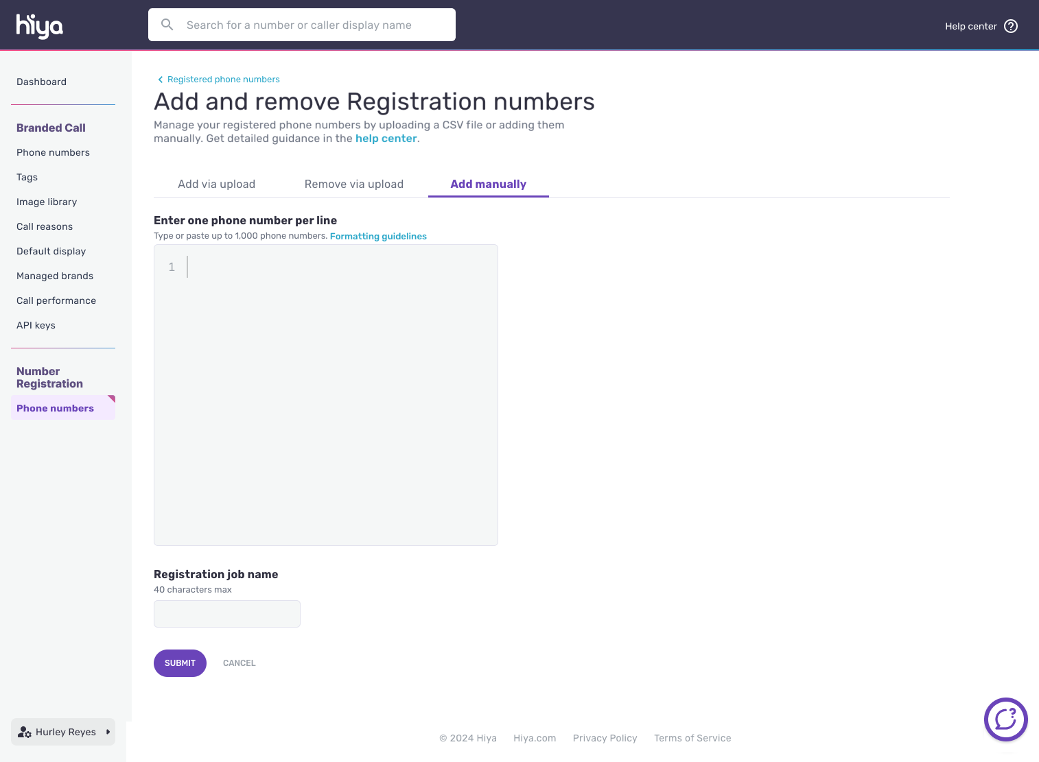 All added phone numbers will first be verified by the Hiya Vetting Services team to confirm their legitimacy and ensure they do not belong to a different business. Only register phone numbers in possession and use by your business.