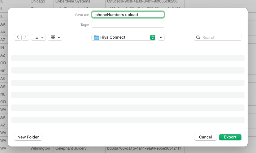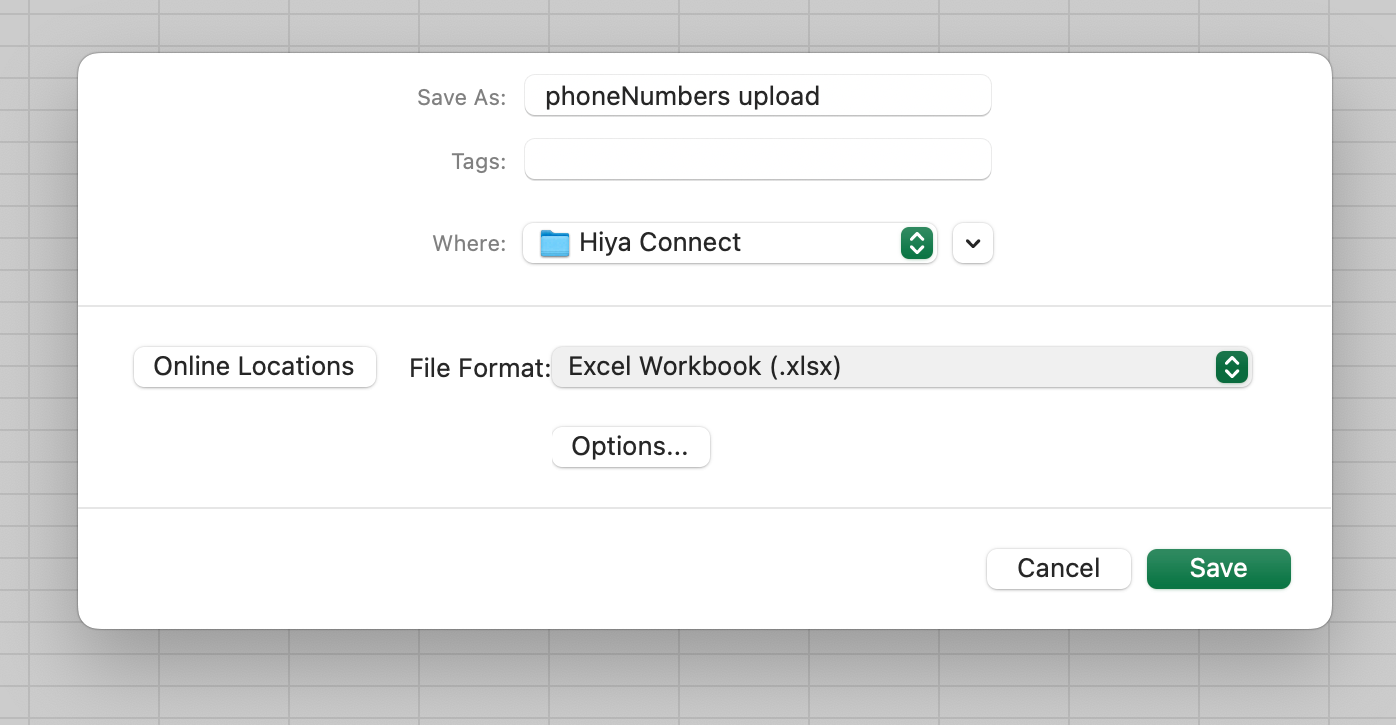 In order to upload your list of phone numbers, you must save your edited spreadsheet as a CSV file. This is a common file format and all common spreadsheet programs include the ability to save or export to this format.
