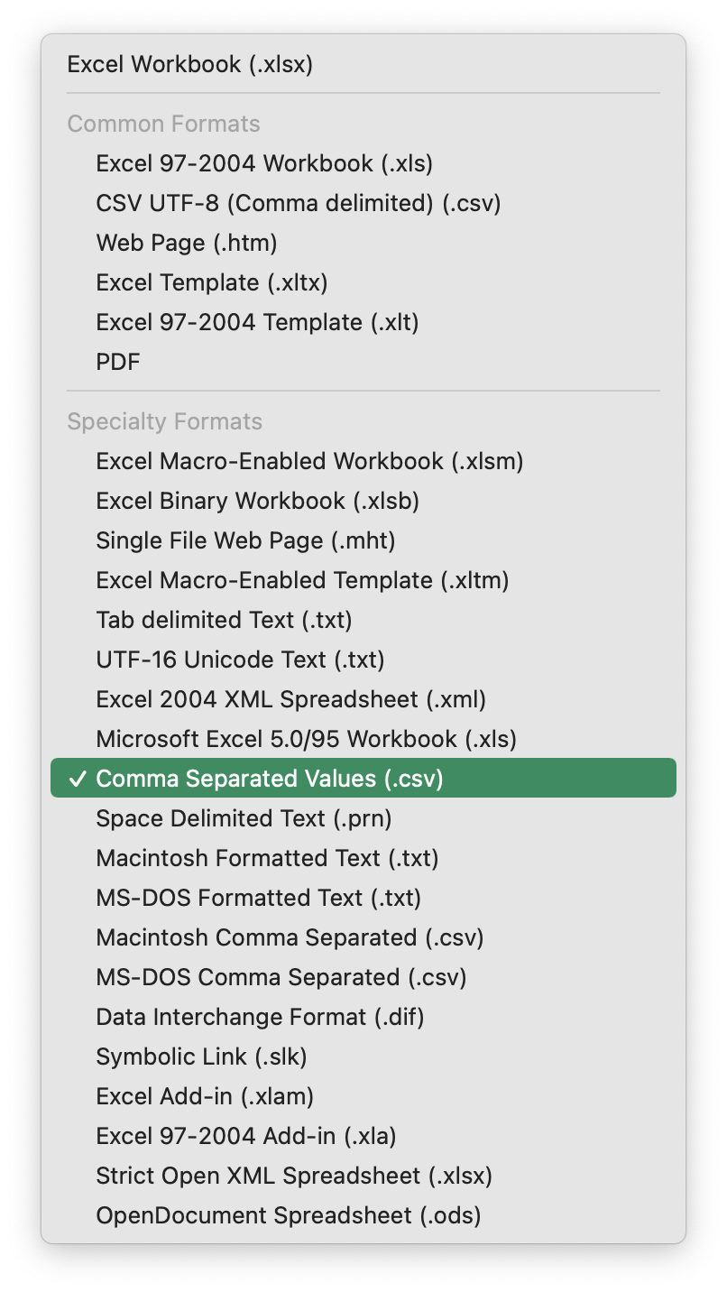 - Appendix: Exporting a CSV from common spreadsheet tools